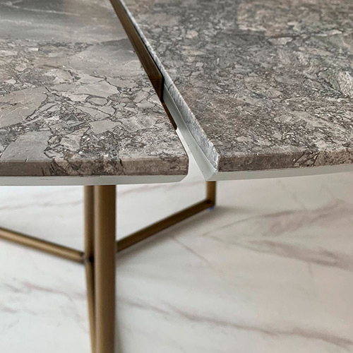 You can choose from five top-quality stone options for the Liesma tabletop: Nebula White, Premium Cream, Pietra Grey, Nairobi Grey and Black Mirage, natural marble thinned nearly 80% thanks to the cutting-edge technology used by our R&D department.